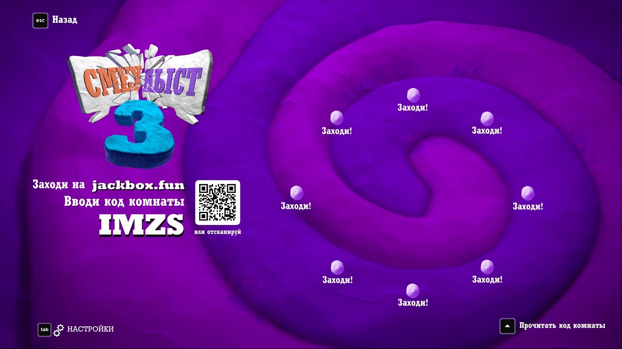 Зайти на сайт JackBox Tv - ввести ник и код приглашения