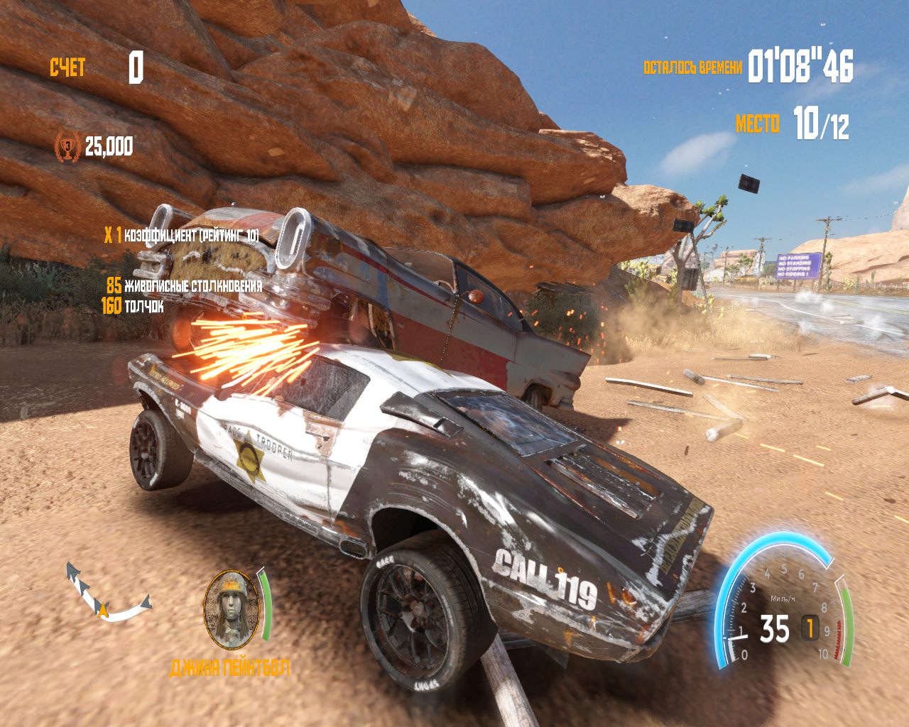 По сюжету, вы должны пройти все основные и дополнительные миссии, которые есть в игре. Конечно, сделать это будет непросто, учитывая то, что игра достаточно сильно видоизменилась по сравнению с предыдущими частями. Хотя основная политика разработчиков осталась той же. Разрушаемость здесь присутствует в полной мере. Уничтожьте всех соперников на поле боя, если не хотите обогнать их честным путем. Ведь победа заключается в том, кто быстрее всех приедет к финишу. Постарайтесь сделать все возможное, чтобы это были именно вы. К тому же, в игре можно таранить противников, уничтожать их, разбивать в клочья автомобили, а затем приезжать к финишу, будучи первым. Нацельтесь на самых ярких представителей гоночных состязаний. Посмотрите, кто обычно выигрывает подобные заезды, того и тараньте, чтобы у вас была возможность победить. Машины будут открываться по мере прохождения. Вы можете их улучшать, повышать характеристики, создавать различные наклейки на капот, лобовые стекла. Здесь все автомобили не имеют лицензии, поэтому придется ездить на их аналогах. Но все равно это довольно интересно и увлекательно, ведь все они разрушаются и могут быть уничтоженными прямо на трассе. Но не забывайте, что не только вы будете таранить соперников. И они позаботятся о том, чтобы вы наелись пыли и были вдавленными в сиденье. Это по-прежнему игра на выживание. Но всё равно главной целью остается победа. Флатаут 4 скачать торрент на русском языке следует всем ценителям качественных гоночных симуляторов, в которых можно разрушить практически все, что присутствует на трассе. И действительно, уничтожать и разбивать разрешается не только автомобили, а и разного плана объекты. Здесь даже можно разбить сарай.