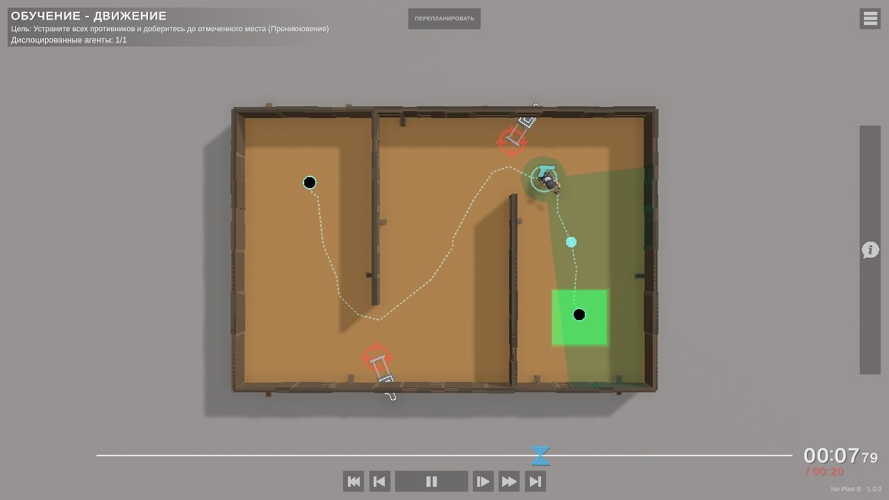Пользователи берут на себя роль одного из этих агентов, каждый из которых обладает своими уникальными навыками и способностями. Они проходят разные уровни, каждый со своим уровнем сложности, чтобы выполнить поставленные перед ними задачи. По пути они встречают нескольких врагов, каждый со своей тактикой и оружием. Геймплей No Plan B динамичен и сложен, с упором на стратегию и точность. Чтобы добиться успеха, игроки должны принимать решения за доли секунды и безупречно выполнять свои планы. Механика создана для создания ощущения реализма и погружения благодаря точной физике и разнообразному оружию и снаряжению на выбор. Личности - Джек, Сара и Алекс, каждый со своими сильными и слабыми сторонами. Названия предметов включают в себя различное оборудование и устройства, такие как крюки, светошумовые гранаты и очки ночного видения. Названия оружия: АК-47, М16 и дробовик.