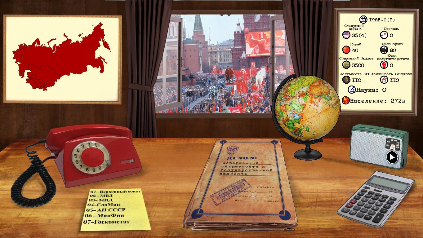 Crisis in the Kremlin 2017: Кризис в кремле скачать торрент и попробовать поиграть в интересную и необычную игру, аналогов которой на рынке игровой индустрии нет точно. Вам необходимо не допустить разрухи и раскола великого Советского Союза и сделать все, чтобы СССР жил вечно. Сделайте то, что хотел Ленин и Сталин. Попробуйте создать экономически сильное государство и демократическую стабильность. Именно от вас зависит принятие всех особо важных государственных законов, которые принимаются с завидной частотой. Решайте серьезные вопросы на самом высшем уровне, только перед тем, как что-либо предпринимать и подписывать - проверяйте и думайте тщательно. Ведь документы могут навредить вам еще больше, нежели то, что есть сейчас. Ситуация за окном весьма нехорошая и нестабильная. Вам необходимо сделать так, чтобы люди могли гордиться Советским Союзом. Если вы думаете, что коммунизм является спасением, так скорее вводите такой закон, который позволит всем “красным” занимать наивысшие руководящие должности и управлять страной. Постройте легендарную СССР назло Америке и всему западу, либо развалите его в пух и прах - решать только вам. Здесь все в ваших руках, даже чистота на улицах. Вы отвечаете буквально за все грехи каждого человека, живущего в Советском Союзе.