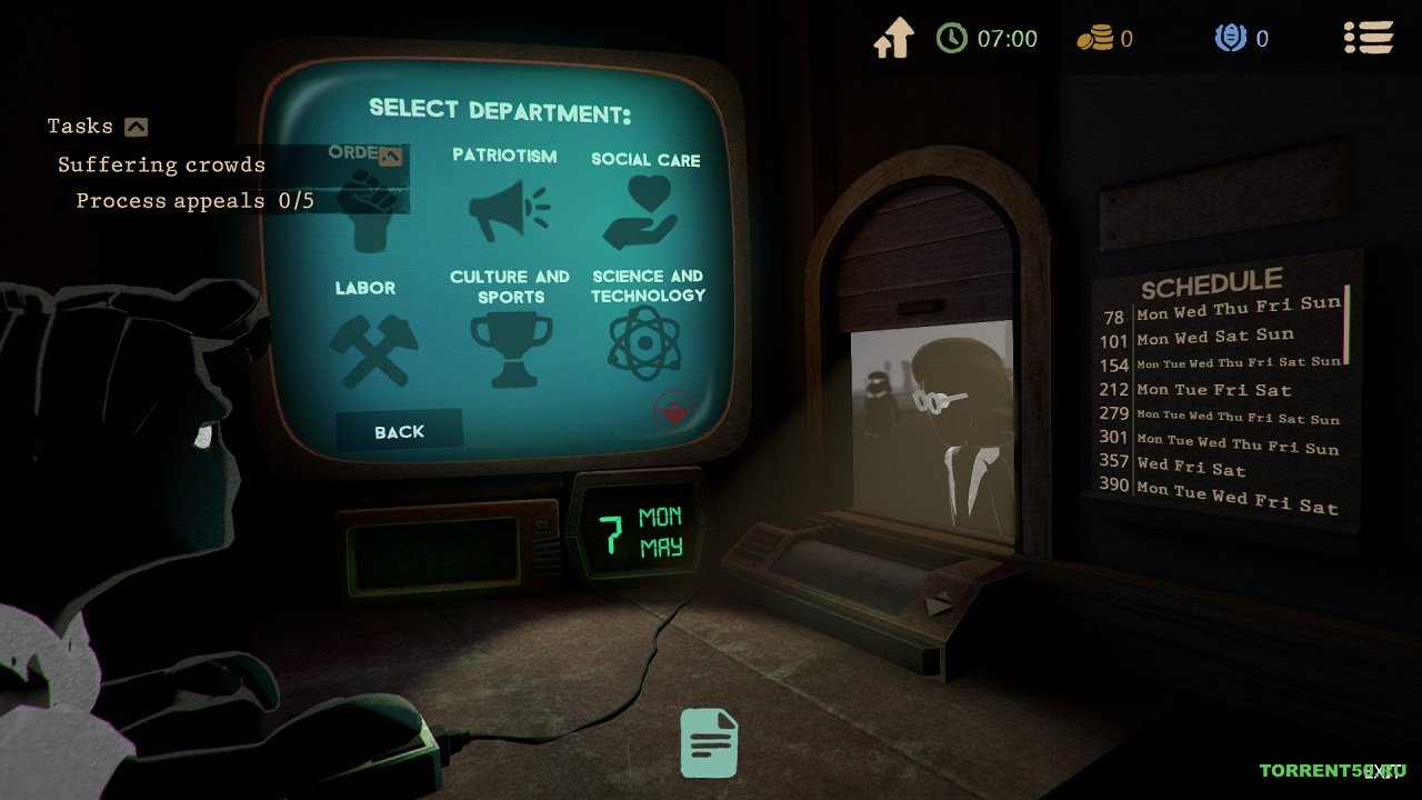 Персонаж теперь имеет новую должность, поэтому будет сидеть в настоящем кресле министра и ловить мошенников, которые часто проводят разные махинации. У персонажа уже будет опыт. В процессе игры каждый геймер будет общаться с иными членами организации. Можно отметить то, что в игре отлично проработана диалоговая система, а также всё на русском языке. Именно теперь стало намного легче контактировать с иными игроками, а также выполнять разные простые и сложные задания. Большую часть времени игроку нужно будет наблюдать за чиновниками и министрами чтобы узнать как можно больше информации. Однако эти ребята достаточно хитрые и узнать всё будет не так просто. Бехолдер 2 скачать торрент. С помощью обмана игроку придется разоблачить членов организации. После каждого успешно выполненного задания персонаж будет получать очки. Если получиться найти основного коррупционера, то можно получить приятные бонусные вознаграждения. На данный момент игра оснащена такими особенностями: