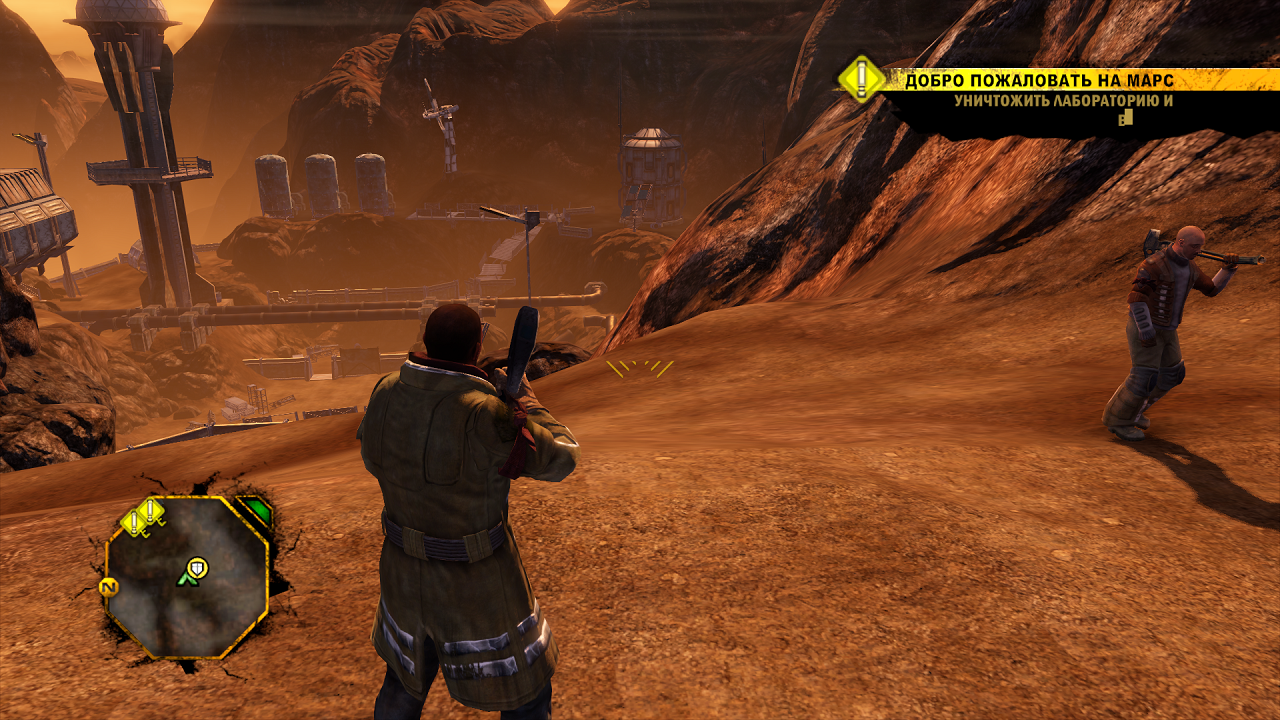 - Игровой мир. Мир в игре открытый, доступный для исследования, но, увы, он «мертв». Естественно, если посудить с научной точки зрения, Марс – неживая планета. Но не в этом игровом мире, где персонажи ходят без скафандров, и добывают полезные ископаемые из недр планеты. К сожалению, разработчики не смогли насыть большие площадки интересным контентом, и на деле – все самое интересное происходит в сюжетных локациях.