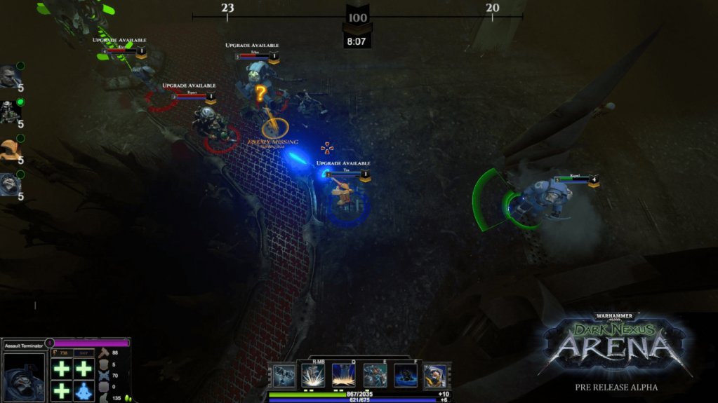 • Визуализация. Игрушка следует традициям вселенной Вархаммер. Перед вами откроется площадка внушительных размеров, на которой воплощен один из регионов столицы планеты Темных Эльдар. Все персонажи имеют хорошую прорисовку, арена имеет неплохой уровень интерактивности (можно разрушать некоторые предметы, и пр.). Отличная анимация движений, отменные спецэффекты, которые реализованы для каждого участника вымышленного сражения в отдельности.• Геймплей. Игровой процесс немного отличается от типичной MOBA-игры. Тут главная цель не уничтожить Трон, а убить максимальное количество противников, так как на данный момент, в игре лишь один режим Death Match.