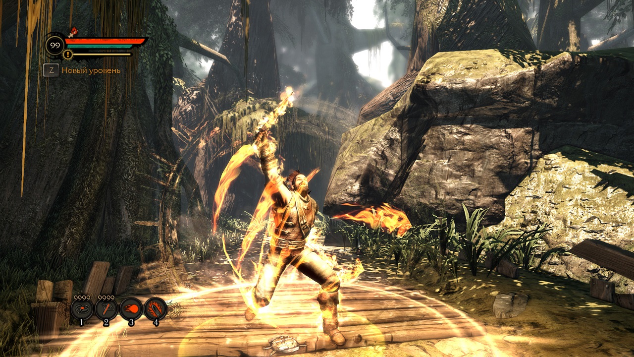 - Система прокачки. Самого персонажа можно улучшать по трем веткам – мечник, разбойник и демон. К примеру, мечник имеет больше всего урона и могущественный напор, тогда как разбойник умеет отскакивать, а благодаря силам демона можно наносит урон «фаерболами», и заряжать клинок огнем!