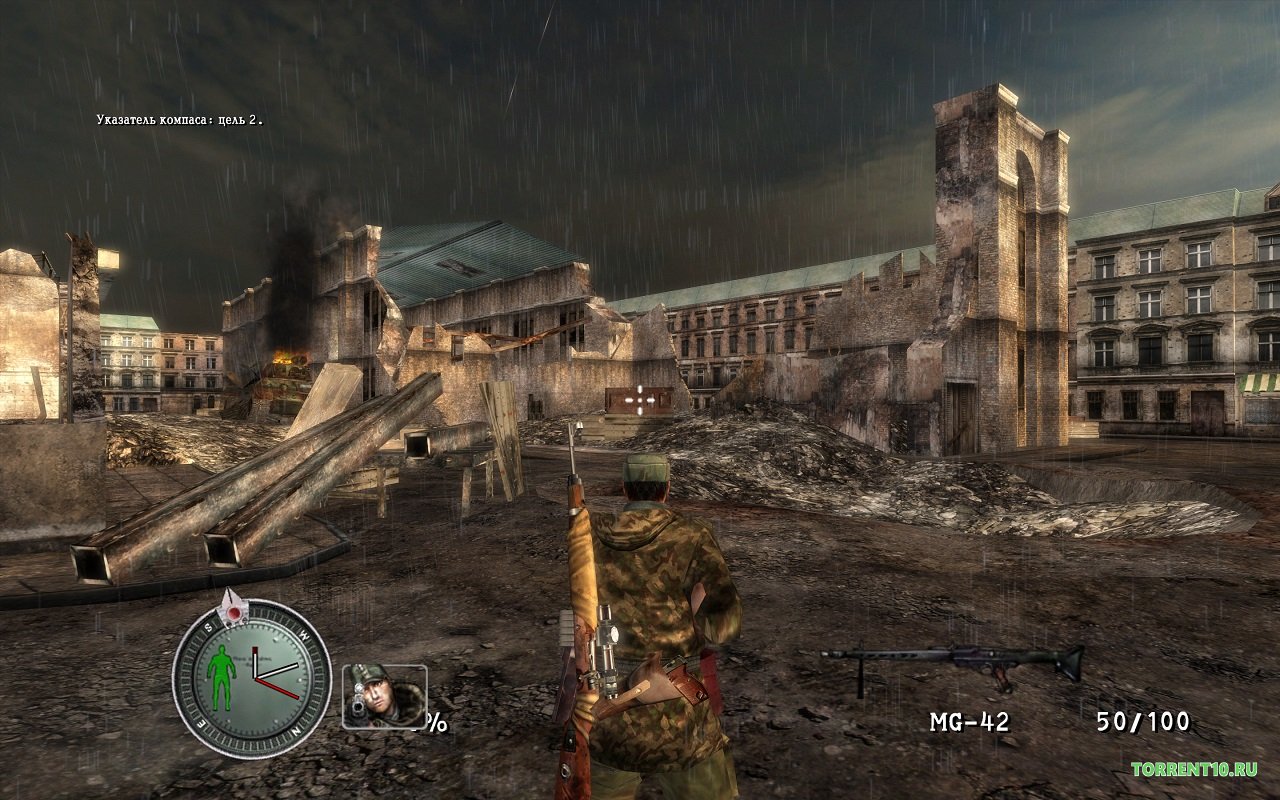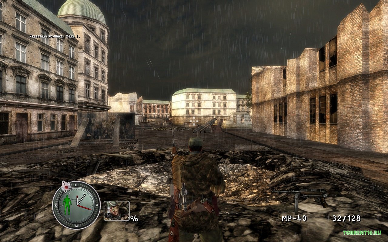 Содержание Sniper Elite не самое лучшее, участник армии США одетый в немецкое обмундирование, пытается противостоять плохим советским военным украсть ядерное оружие, скачайте через торрент если хотите участвовать в этом. Он совсем один и у него нет помощников, и сейчас последние военный дни 1945 года, по разгромленному Берлину бродят говорящие по-русски, и каждое слово имеет оттенок пафоса.