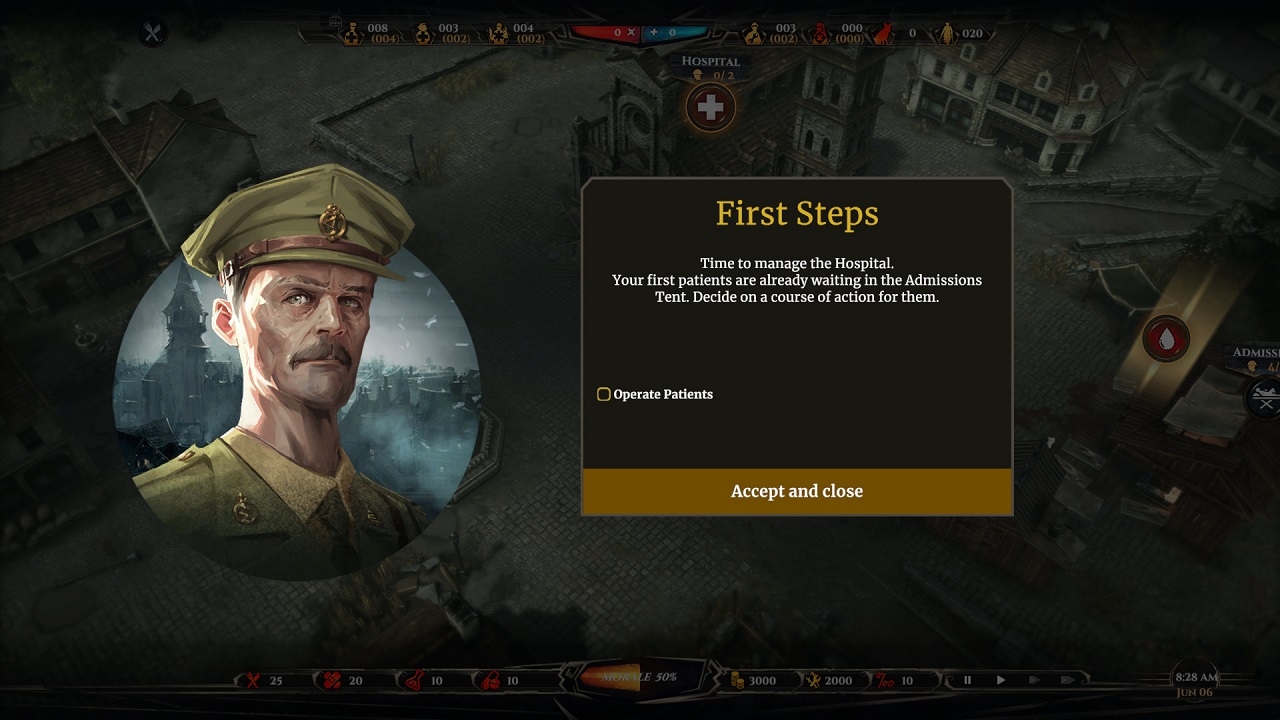 Вы решаете нанять врачей, медсестер и инженеров, и ваши решения оказывают большое влияние на успех больницы. Ваши действия и решения окажут серьезное влияние на жизни сотен солдат, которые приходят в ваше медицинское учреждение.