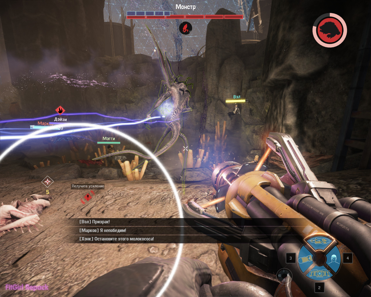 По сути, она представляет собой научно-фантастический кооперативный шутер, который заставит четырех игроков, представленных в роли охотников, проводить самое настоящее сафари на монстра, которым кстати, также будет управлять человек.